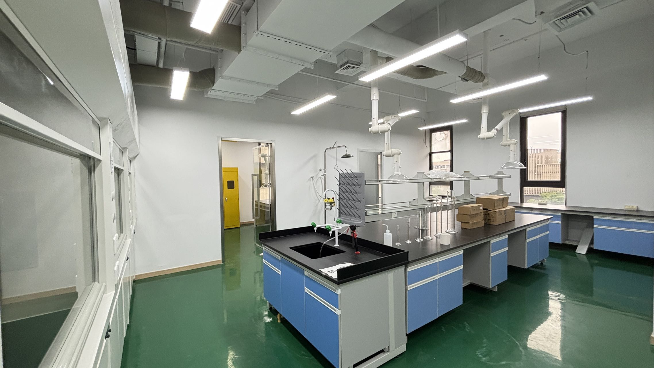 项目出租:535平生物化学实验室 其他实验室部分有实验台,万向罩,分析室,设备间,危废间,耗材仓库,办公区有二十多人工位,3个隔断,2个会议室;