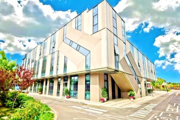 东枫德必WE人工智能创新基地坐落于北京市朝阳区东风南路8号,11幢独立独栋建筑为载体,将人工智能产业的前沿脉动,与花园式办公的诗意栖居,熔铸成一座可感知、可交互、可生长的科技人文共生体。基地的核心设计哲学,是打破办公空间的封闭性。11幢独栋楼宇并非整齐排列的标准化单元,而是以“纵横灵动”的非对称布局,形成自然的街巷肌理与微地形起伏。每栋建筑均配备私享花园与瞻星屋顶花园——后者不仅是观景平台,更是企业团队进行头脑风暴、客户接待、夜间灵感碰撞的“第三空间”。