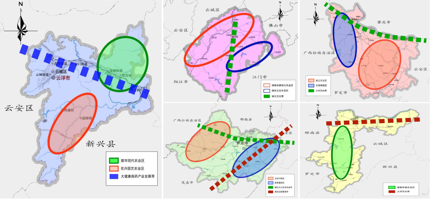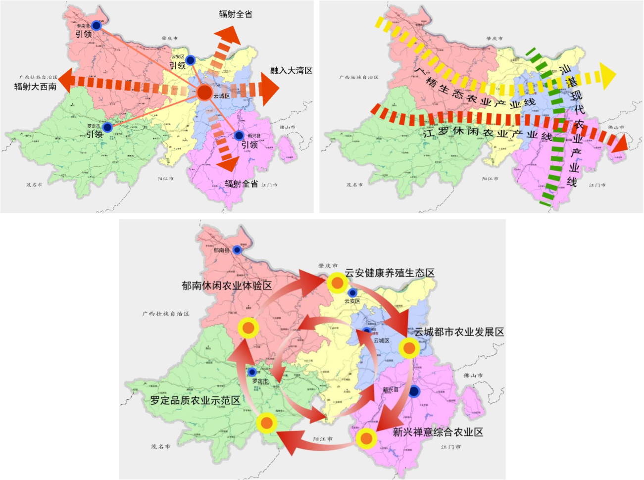 云浮市农业总体为“一区、三线、五区县”的发展框架,引领云浮市“2+9农业产业园”产业聚集区高质量发展。“2”为2个国家级现代农业产业园,包括广东省新兴县现代农业产业园、广东省云浮市云城区现代农业产业园。“9”为9个省级现代农业产业园,包括云浮市(云城)南药产业园、云浮市南药(罗定肉桂)产业园、温氏新兴优质鸡产业园、云浮市云安区肉牛产业园、云浮市郁南县无核黄皮产业园、罗定市丝苗米产业园、新兴县生猪产业园、云安区花卉苗木产业园、新兴县丝苗米产业园。