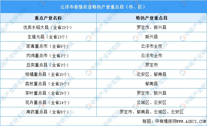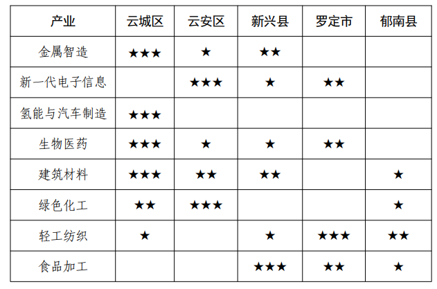 “十四五”期间云浮各县(市、区)制造业产业布局表