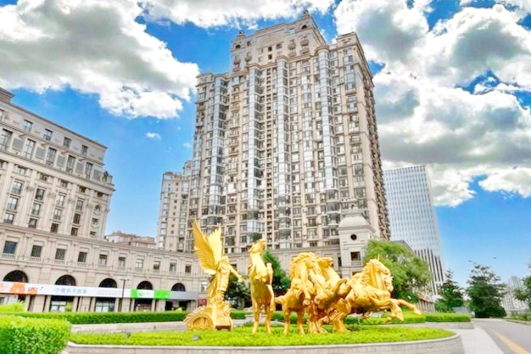 与传统写字楼相比,朝阳合生财富广场最具特色的亮点,便是将自然生态与商务办公完美融合,打破了“钢筋水泥”的刻板办公印象,打造出真正意义上的自然生态办公社区。项目精心规划了大幅中轴水景与局部精细丰富的法式园林,将水景的灵动与法式园林的浪漫、精致有机整合,摒弃了传统写字楼单调的景观设计,让自然景观成为项目的重要组成部分。在景观营造过程中,设计团队充分利用微地形变化,打造出高低有致、错落共生的景观层次,既有开阔的中轴水景,又有精致的法式绿植搭配,亭台点缀其间,步道蜿蜒其中,让办公人群在忙碌的工作之余,能够随时亲近自然、舒缓压力。