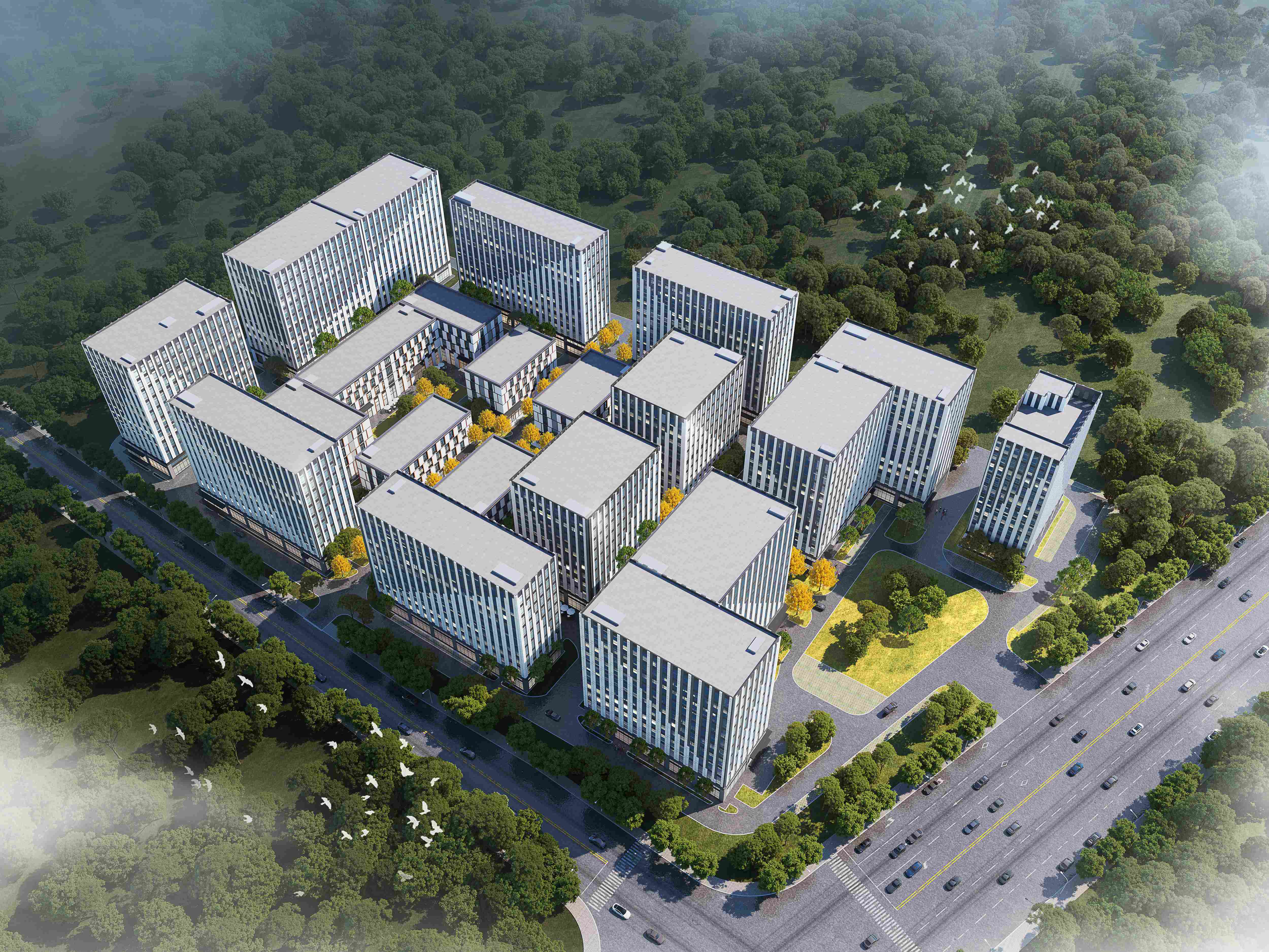 便捷通勤:停车位配比高达1000:6;专属园区大巴无缝接驳地铁,方便入园企业员工上下班。