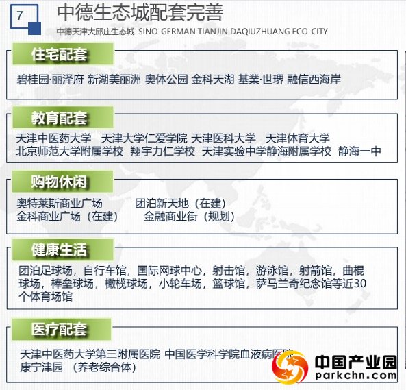 中德生态城融合区及拓展区将作为产业化项目承载基地,依托大邱庄工业区结合已有钢铁制品产业,探索高附加值的金属制品、复合材料、高端装备制造业,围绕先进制造业,以绿色建筑、新能源、医疗器械、新材料、节能环保、包装为6大方向,逐步促进产业链纵向延伸,横向互动,形成产业微生态,推动传统产业转型升级。
