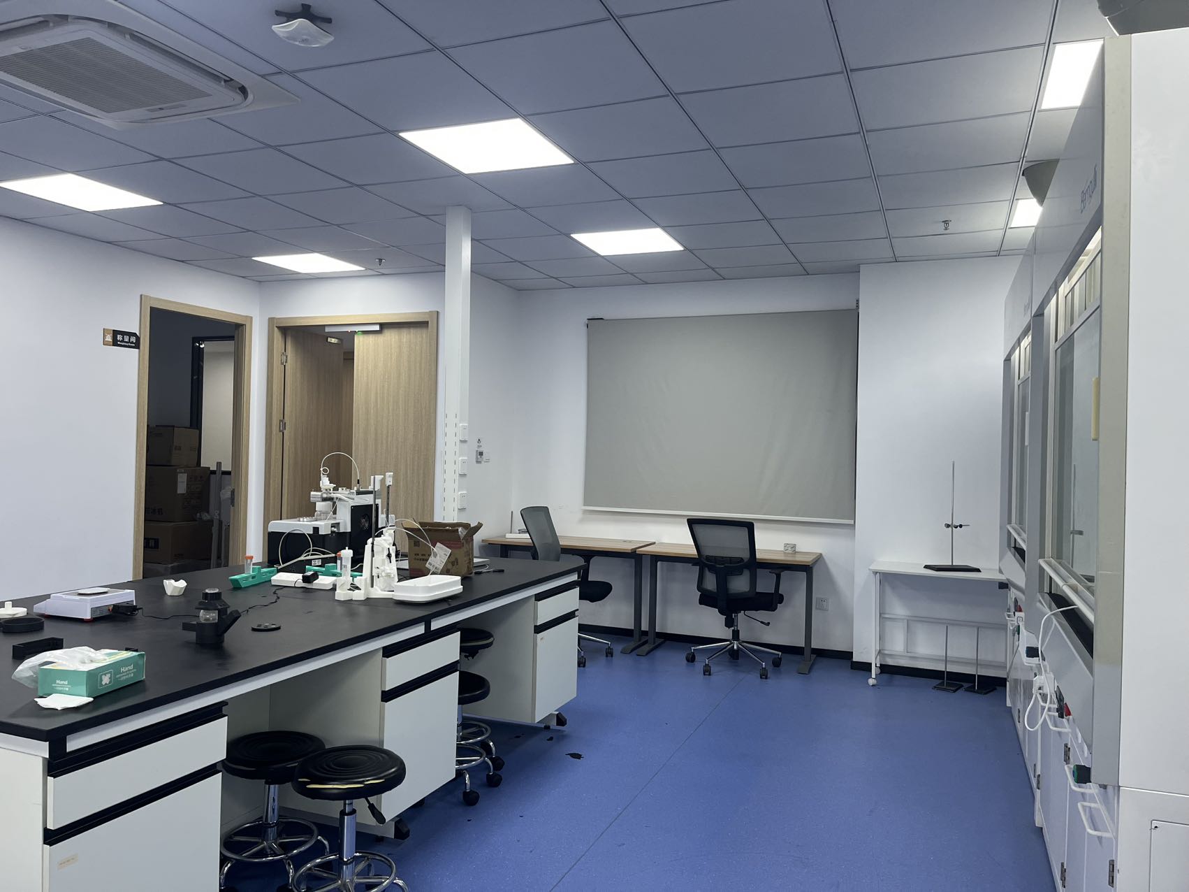 精装105平理化实验室 现房,实验室内有2台通风橱,带一间分析室,危废间办公区等;