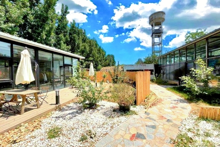 2049文创园摒弃了传统写字楼的封闭格子间,全面采用独栋庭院式布局。每栋建筑均保留原始结构,内部则由入住主体自主设计改造,形成“一院一风格、一屋一故事”的个性化办公景观。有人将旧锅炉房改造成玻璃穹顶的冥想书房,有人将冷藏库变为沉浸式VR影厅,还有团队在屋顶搭建垂直农场与露天放映区,使办公空间成为生活美学的延伸。园区绿化率超65%,原生银杏、国槐与引进的观赏草本植物交织成四季流转的生态画卷,步道蜿蜒于林荫之间,咖啡香与书叶声交织,营造出“在自然中工作,在创意里生活”的独特氛围。