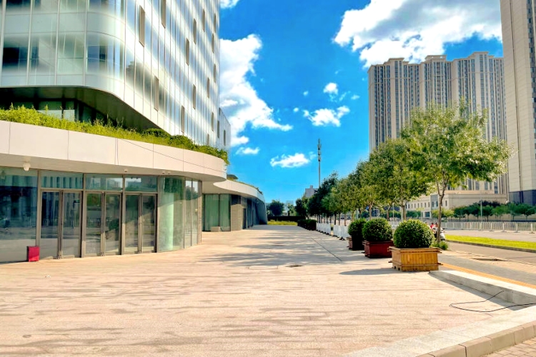 每层办公区均设有专属景观露台与阳光甲板,配以本土乔木(如银杏、国槐)与耐候灌木(如红叶石楠、金叶女贞)构成的立体绿化系统,形成空中森林微气候。建筑裙房采用低密度、开放式布局,融合生态水景、休憩步道与垂直绿墙,使商业空间不再是孤立的消费节点,而是城市公园的有机延伸。项目周边被常营公园、东坝郊野公园等五大城市绿地环抱,构建“办公—公园—生活”三重生态闭环,真正实现“在山中办公”的沉浸式体验。